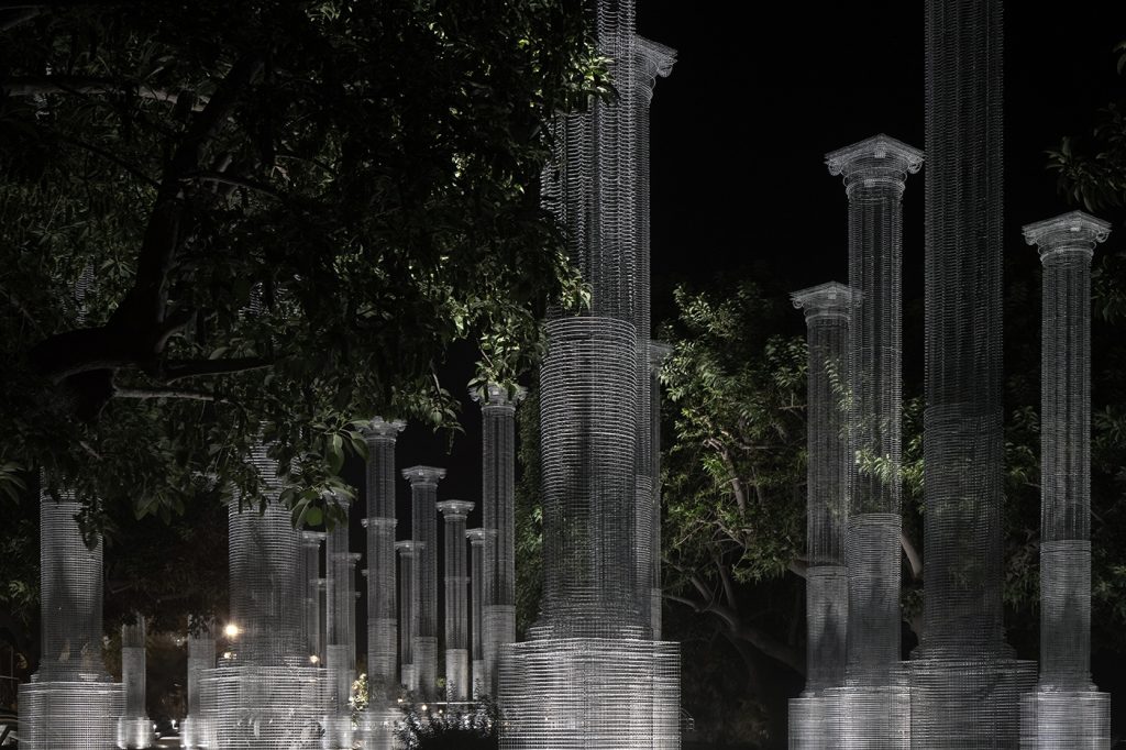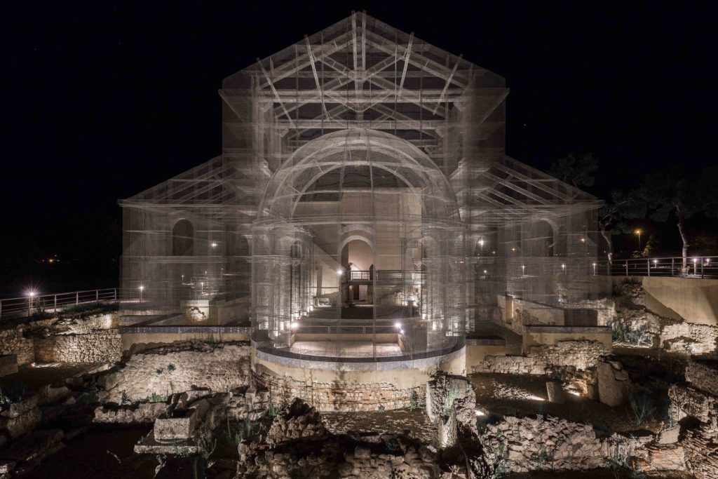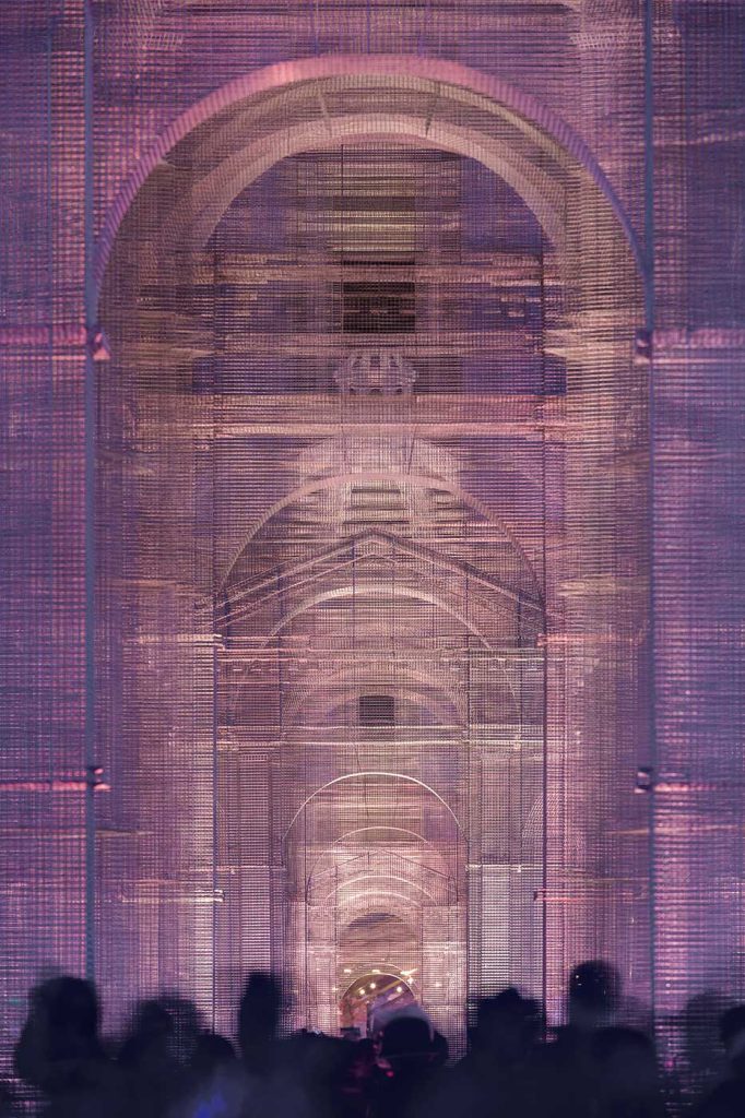 Tresoldi利用鐵絲網的透明度製造出模糊的物理邊界,產生視覺上的融合,觸發了觀眾與空間和歷史的持續性對話,並超越了時空的維度,將建築投射到一個新的時間延伸中:已經消失或從未存在過的東西,在一個不屬於自己的時代重新活過來。