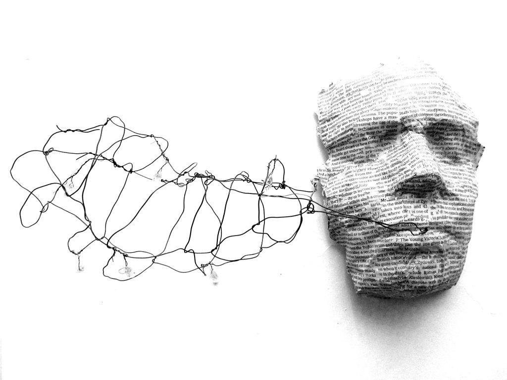 The Talk (Mask with Speech Bubble), 2016, Ines Seidel.