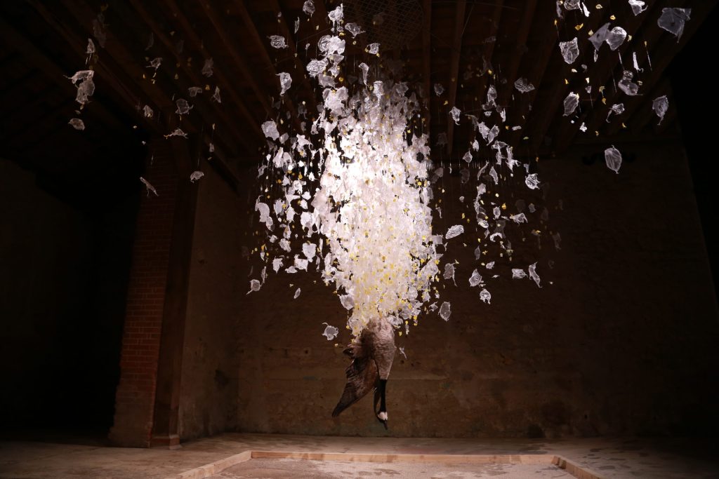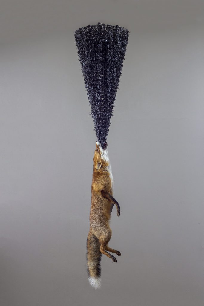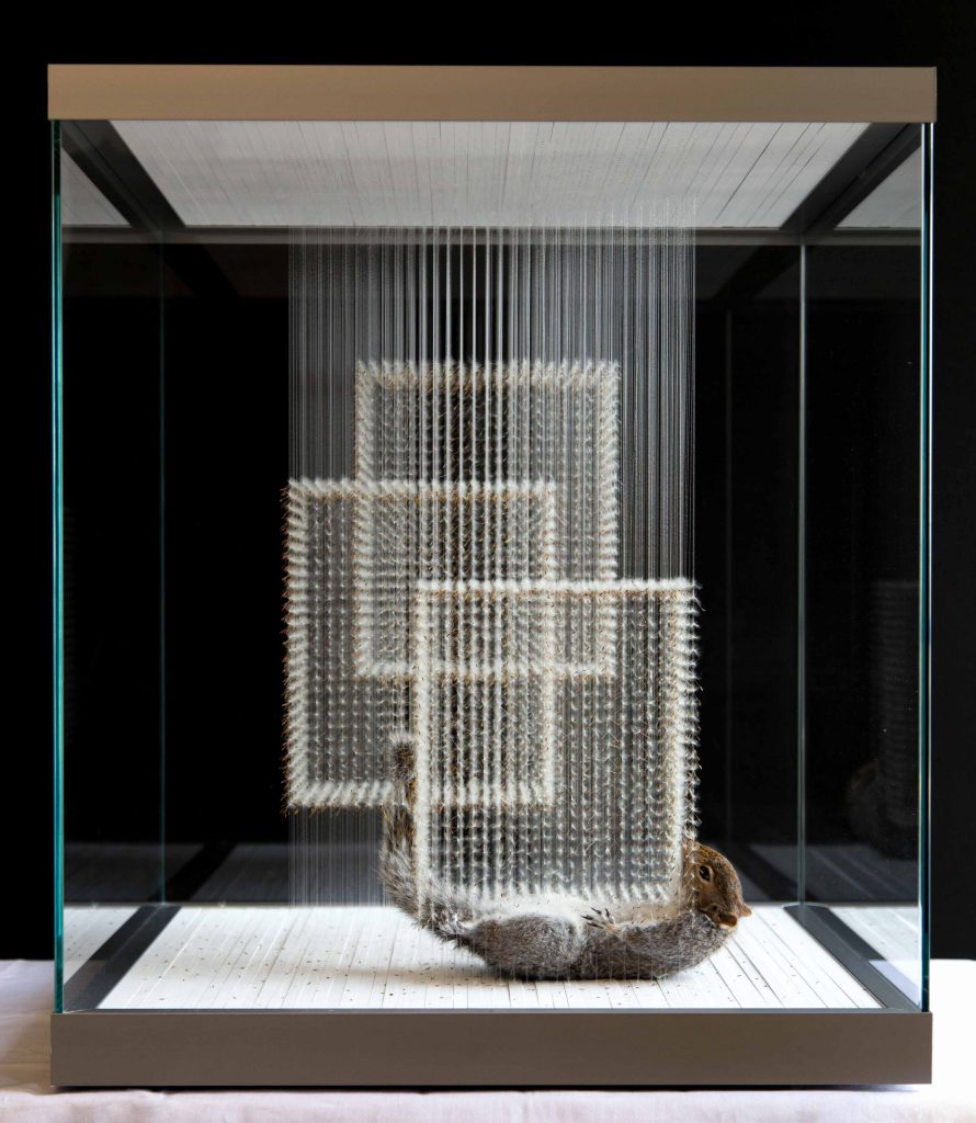 北愛爾蘭藝術家Claire Morgan用精巧的懸掛裝置展現了其對自然過程和有機材料的興趣。在她的作品中,上演了人類與自然之間戲劇性的相遇,並揭示了不可掌控的生與死的複雜性:「探索動物的物理性、死亡和藝術中的永久性幻覺,是我試圖接受這些事情的方式。」