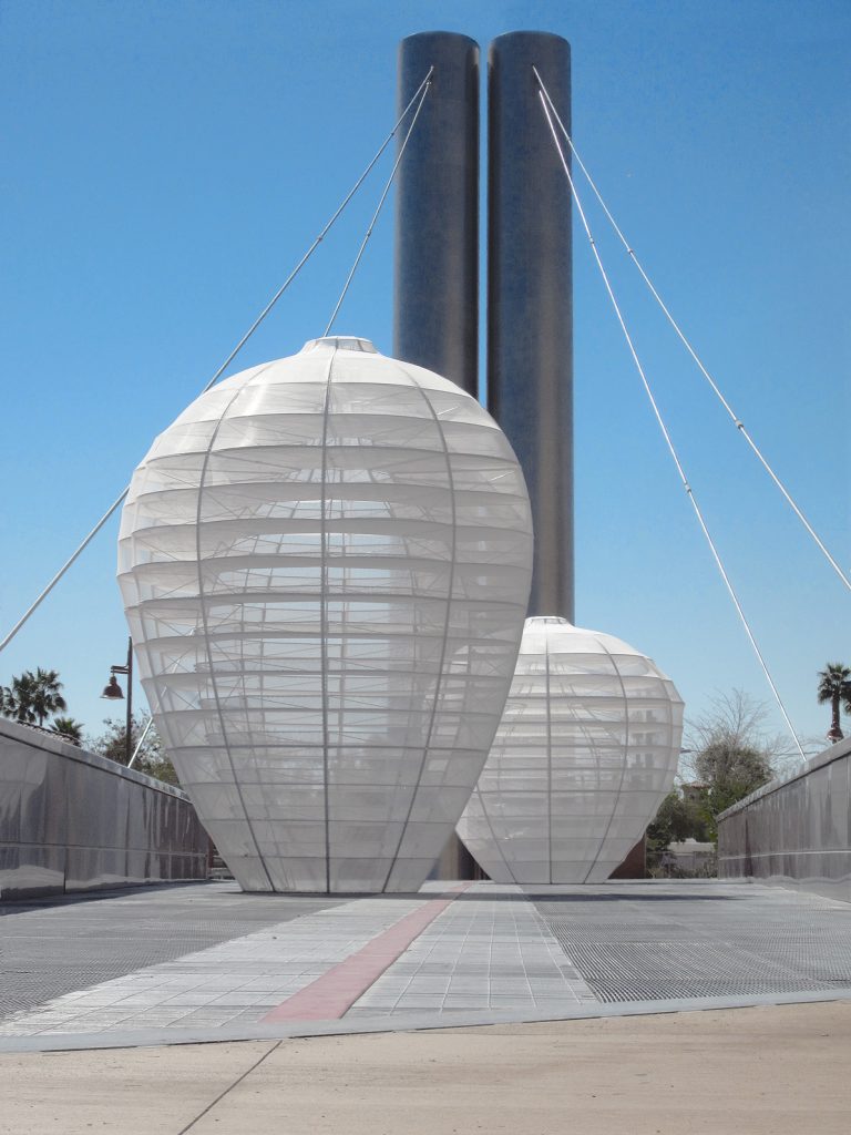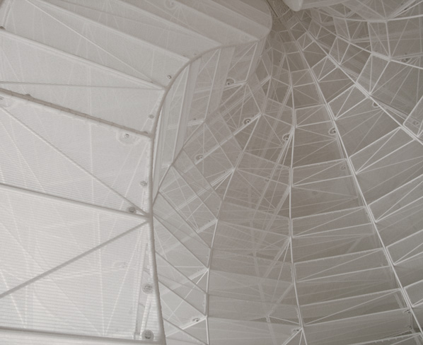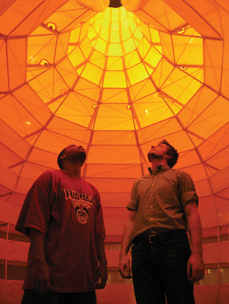 藝術家Kendall Buster以其探索「生物建築」理念的雕塑和公共作品而聞名。受到微觀生物和細胞結構的啓發,Buster用高科技織物和模塊化框架矩陣以巨大的規模實現了這些自然形式。由此創造出的裝置使觀眾感到穿透和被籠罩,從而改變了關於內外空間的經驗。